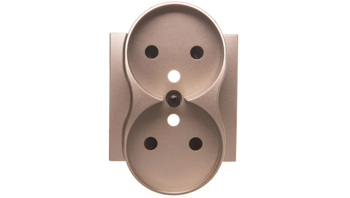 Pokrywa gniazda podwójnego z przesłonami do ramek PREMIUM, złoty mat SIMON54 o numerze katalogowym DGZ2MZP/44 w kategorii Plakietki, Ramki, klawisze, plakietki. Produkt wyprodukowany przez markę KONTAKT-SIMON, seria SIMON 54.