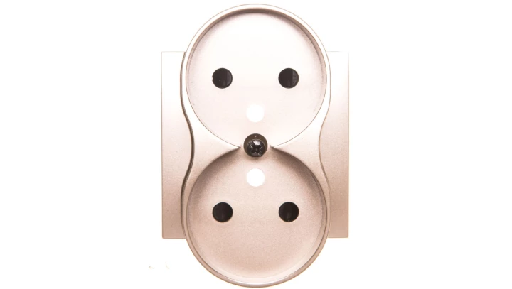 Pokrywa gniazda podwójnego z przesłonami do RAMEK NATURE, złoty mat SIMON54 NATURE o numerze katalogowym DGZ2MZNP/44 w kategorii Plakietki, Ramki, klawisze, plakietki. Produkt wyprodukowany przez markę KONTAKT-SIMON, seria SIMON 54 NATURE.