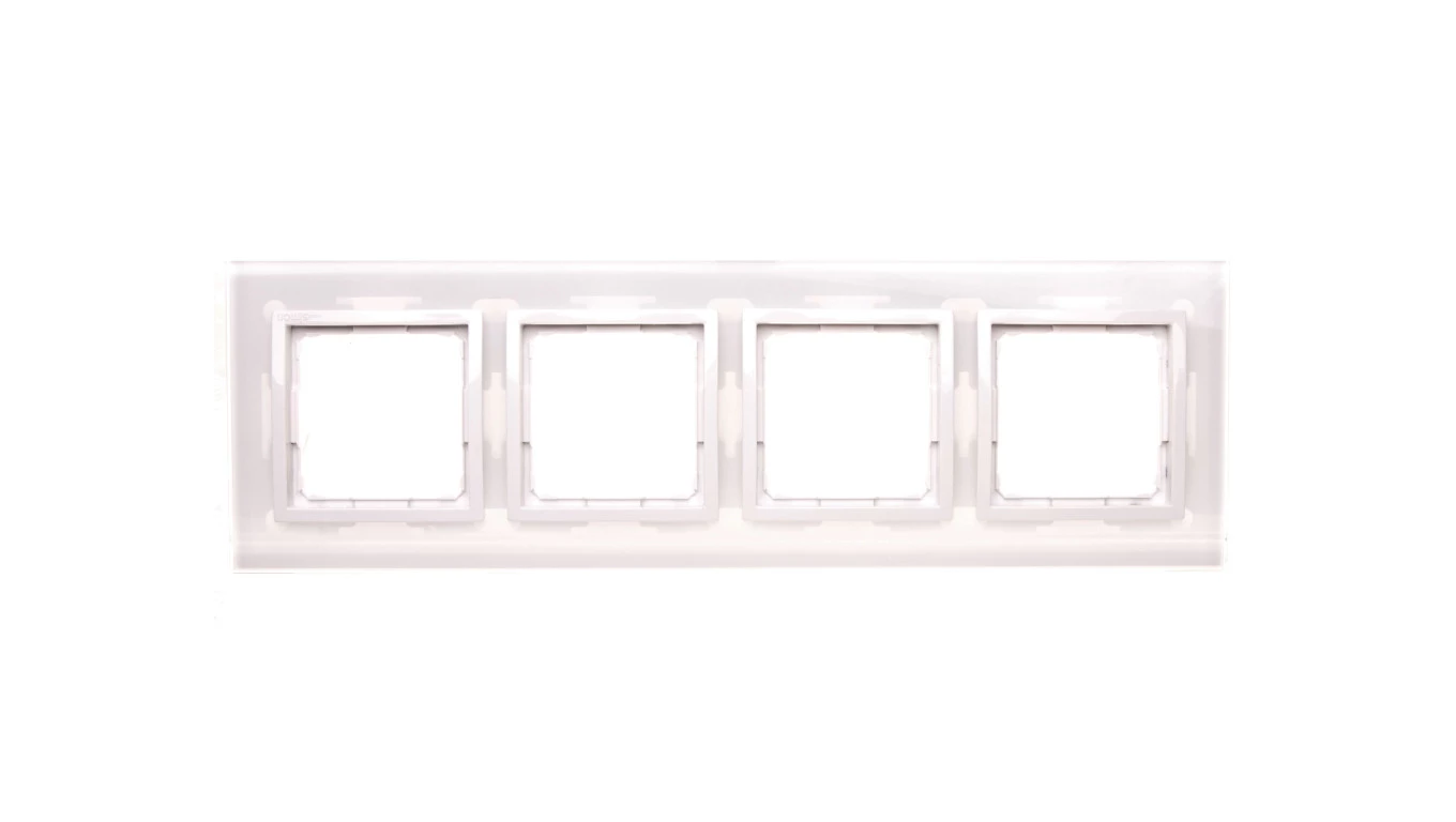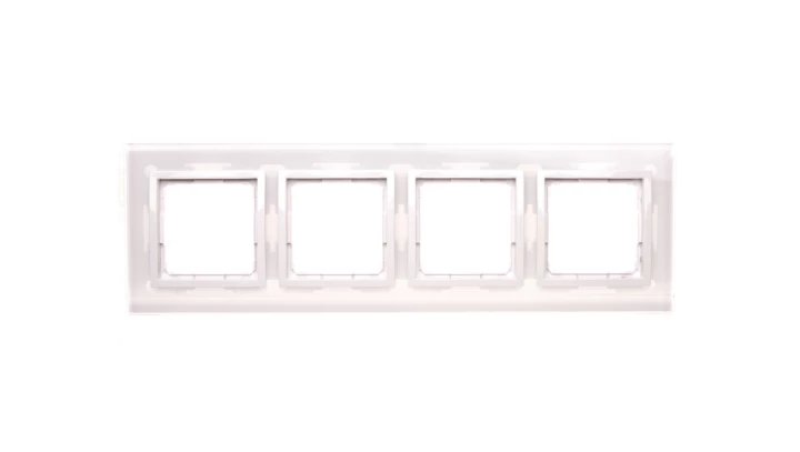 Ramka 4-krotna Nature-Szkło, BIAŁA PERŁA, IP20/IP44' ('IP44-zastosować uszczelki DUN4), SIMON54 NATURE o numerze katalogowym DRN4/70 w kategorii Ramki, Ramki, klawisze, plakietki. Produkt wyprodukowany przez markę KONTAKT-SIMON, seria SIMON 54 NATURE.