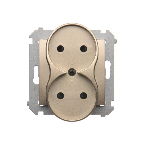 Gniazdo wtyczkowe bez uziemienia z przesłonami podwójne do RAMEK NATURE (moduł) 16A, 250V AC, zaciski śrubowe złoty (met.) SIMON54 NATURE o numerze katalogowym DG2MZN.01/44 w kategorii Gniazda podtynkowe, Gniazda instalacyjne. Produkt wyprodukowany przez markę KONTAKT-SIMON, seria SIMON 54 NATURE.