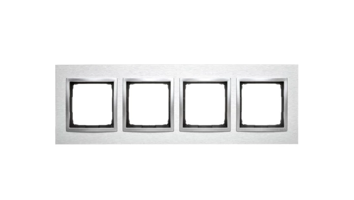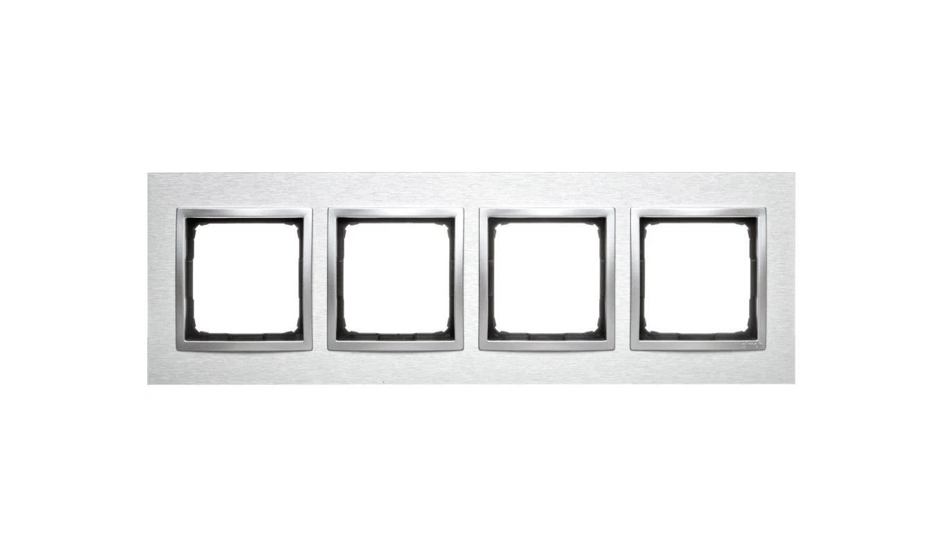 Ramka 4-krotna Nature-Metal, INOX KLASYCZNY, IP20/IP44' ('IP44-zastosować uszczelki DUN4), SIMON54 NATURE o numerze katalogowym DRN4/77 w kategorii Ramki, Ramki, klawisze, plakietki. Produkt wyprodukowany przez markę KONTAKT-SIMON, seria SIMON 54 NATURE.