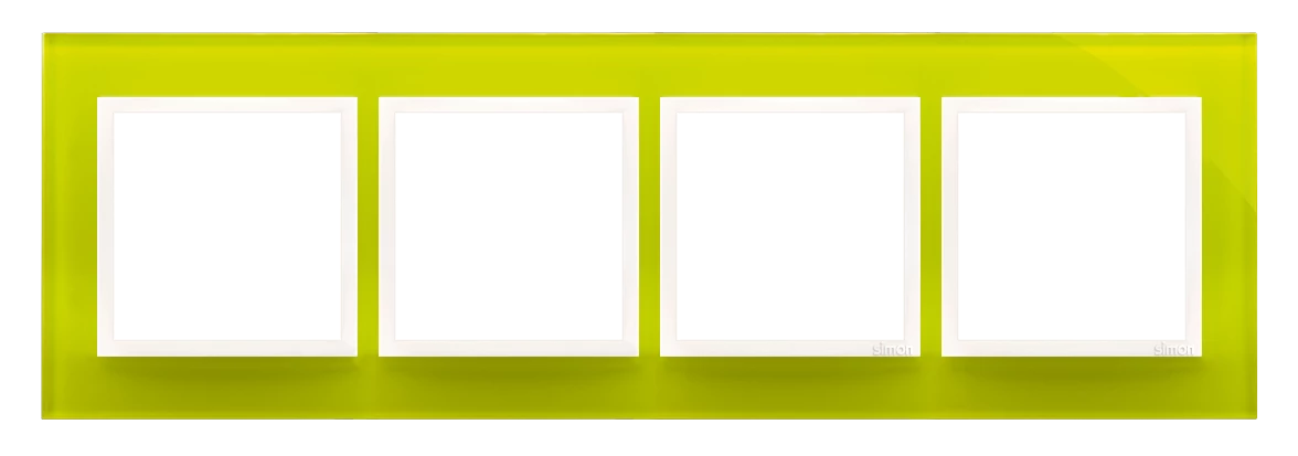 Ramka 4-krotna Nature-Szkło, LIMONKOWY SORBET, IP20/IP44' ('IP44-zastosować uszczelki DUN4), SIMON54 NATURE o numerze katalogowym DRN4/90 w kategorii Ramki, Ramki, klawisze, plakietki. Produkt wyprodukowany przez markę KONTAKT-SIMON, seria SIMON 54 NATURE.