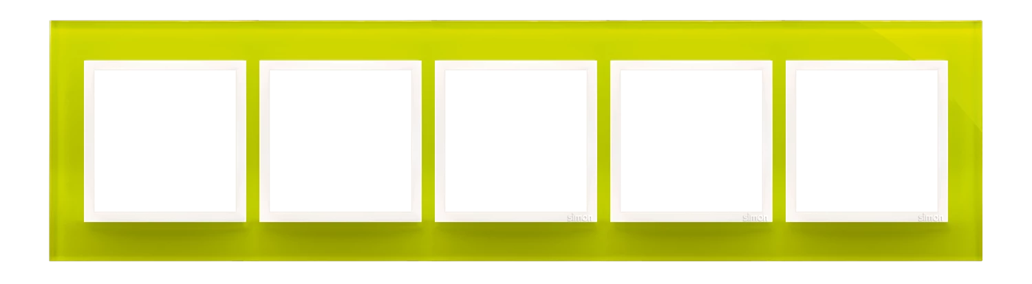 Ramka 5-krotna Nature-Szkło, LIMONKOWY SORBET, IP20/IP44' ('IP44-zastosować uszczelki DUN4), SIMON54 NATURE o numerze katalogowym DRN5/90 w kategorii Ramki, Ramki, klawisze, plakietki. Produkt wyprodukowany przez markę KONTAKT-SIMON, seria SIMON 54 NATURE.