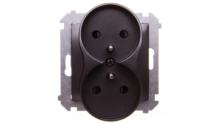 Gniazdo wtyczkowe z uziemieniem z przesłonami podwójne do RAMEK NATURE (moduł) 16A, 250V AC, zaciski śrubowe antracyt (met.) Simon54 o numerze katalogowym DGZ2MZN.01/48 w kategorii Gniazda podtynkowe, Gniazda instalacyjne. Produkt wyprodukowany przez markę KONTAKT-SIMON, seria SIMON 54 NATURE.