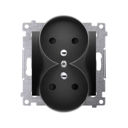 Gniazdo wtyczkowe z uziemieniem z przesłonami podwójne do ramek NATURE (moduł) 16A, 250V~, zaciski śrubowe, czarny mat Simon54 o numerze katalogowym DGZ2MZN.01/49 w kategorii Gniazda podtynkowe, Gniazda instalacyjne. Produkt wyprodukowany przez markę KONTAKT-SIMON, seria SIMON 54.