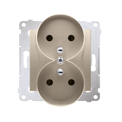 Gniazdo wtyczkowe z uziemieniem z przesłonami podwójne do RAMEK NATURE (moduł) 16A, 250V AC, zaciski śrubowe złoty (met.) Simon54 o numerze katalogowym DGZ2MZN.01/44 w kategorii Gniazda podtynkowe, Gniazda instalacyjne. Produkt wyprodukowany przez markę KONTAKT-SIMON, seria SIMON 54 NATURE.