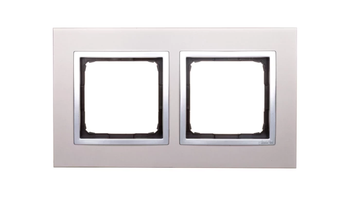 Ramka 2-krotna Nature-Metal, SATYNOWY BLASK, IP20/IP44' ('IP44-zastosować uszczelki DUN2), SIMON54 NATURE o numerze katalogowym DRN2/79 w kategorii Ramki, Ramki, klawisze, plakietki. Produkt wyprodukowany przez markę KONTAKT-SIMON, seria SIMON 54 NATURE.