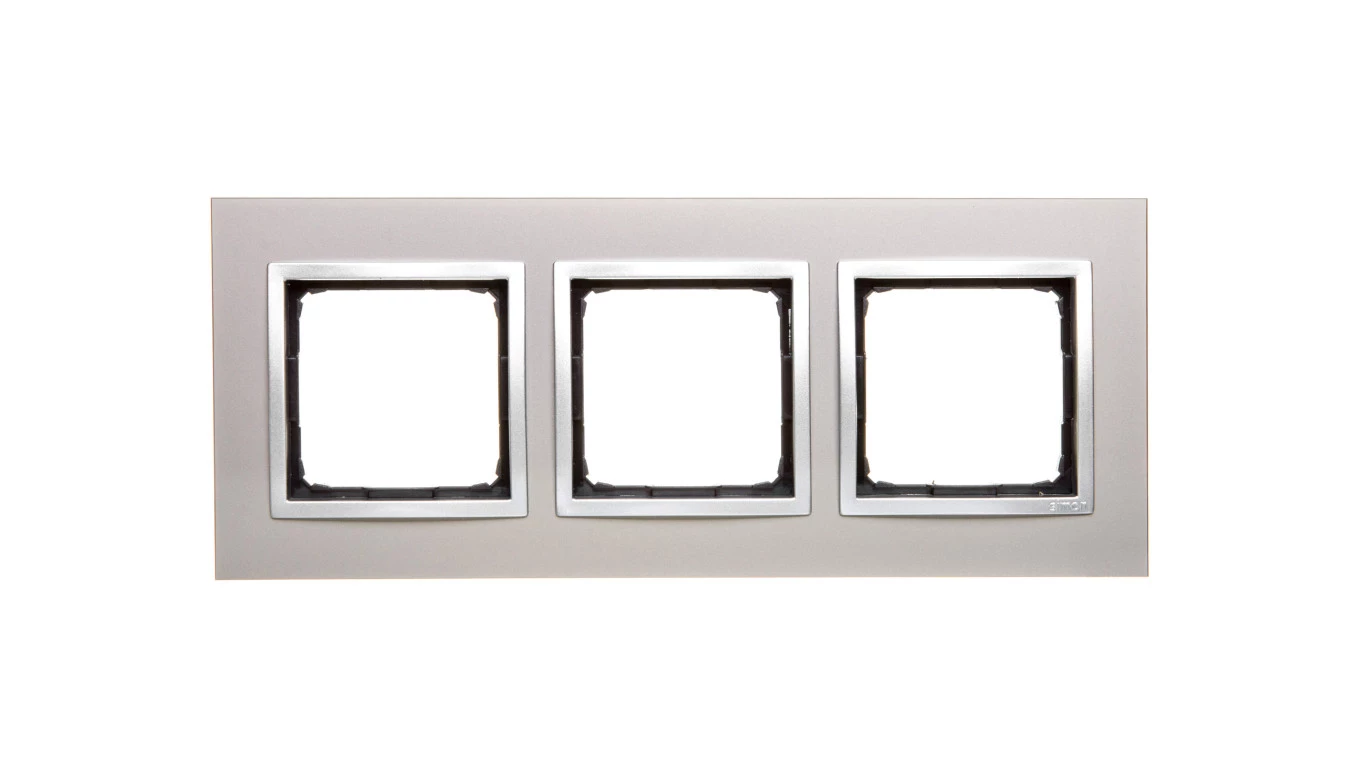 Ramka 3-krotna Nature-Metal, SATYNOWY BLASK, IP20/IP44' ('IP44-zastosować uszczelki DUN3), SIMON54 NATURE o numerze katalogowym DRN3/79 w kategorii Ramki, Ramki, klawisze, plakietki. Produkt wyprodukowany przez markę KONTAKT-SIMON, seria SIMON 54 NATURE.
