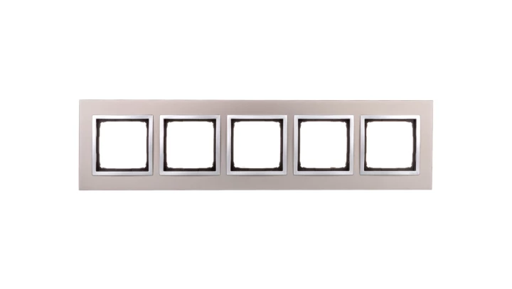 Ramka 5-krotna Nature-Metal, SATYNOWY BLASK, IP20/IP44' ('IP44-zastosować uszczelki DUN4), SIMON54 NATURE o numerze katalogowym DRN5/79 w kategorii Ramki, Ramki, klawisze, plakietki. Produkt wyprodukowany przez markę KONTAKT-SIMON, seria SIMON 54 NATURE.