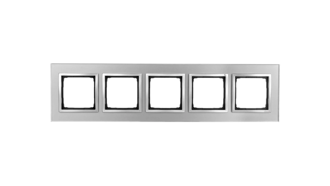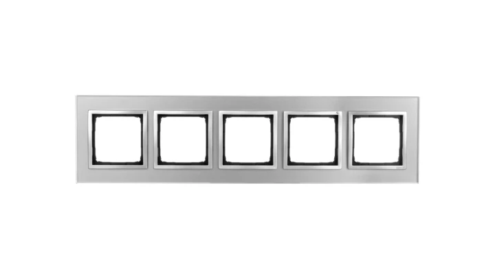 Ramka 5-krotna Nature-Szkło, SREBRNA MGŁA, IP20/IP44' ('IP44-zastosować uszczelki DUN4), SIMON54 NATURE o numerze katalogowym DRN5/71 w kategorii Ramki, Ramki, klawisze, plakietki. Produkt wyprodukowany przez markę KONTAKT-SIMON, seria SIMON 54 NATURE.
