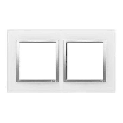 Ramka 2-krotna Nature-Szkło, SREBRNA PERŁA, IP20/IP44* (*IP44-należy zastosować uszczelkę ramki DUN2), SIMON54 NATURE o numerze katalogowym DRN2/69 w kategorii Ramki, Ramki, klawisze, plakietki. Produkt wyprodukowany przez markę KONTAKT-SIMON, seria SIMON 54 NATURE.