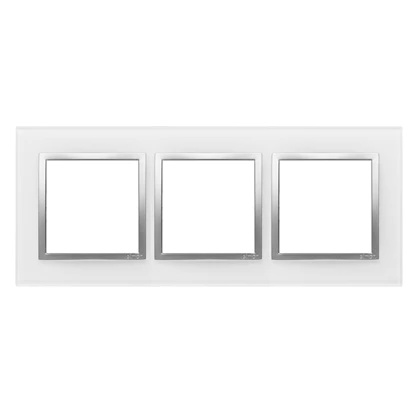 Ramka 3-krotna Nature-Szkło, SREBRNA PERŁA, IP20/IP44* (*IP44-należy zastosować uszczelkę ramki DUN3), SIMON54 NATURE o numerze katalogowym DRN3/69 w kategorii Ramki, Ramki, klawisze, plakietki. Produkt wyprodukowany przez markę KONTAKT-SIMON, seria SIMON 54 NATURE.