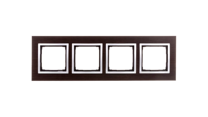 Ramka 4-krotna Nature-Drewno, SREBRNE WENGE, IP20/IP44' ('IP44-zastosować uszczelki DUN4), SIMON54 NATURE o numerze katalogowym DRN4/84 w kategorii Ramki, Ramki, klawisze, plakietki. Produkt wyprodukowany przez markę KONTAKT-SIMON, seria SIMON 54 NATURE.