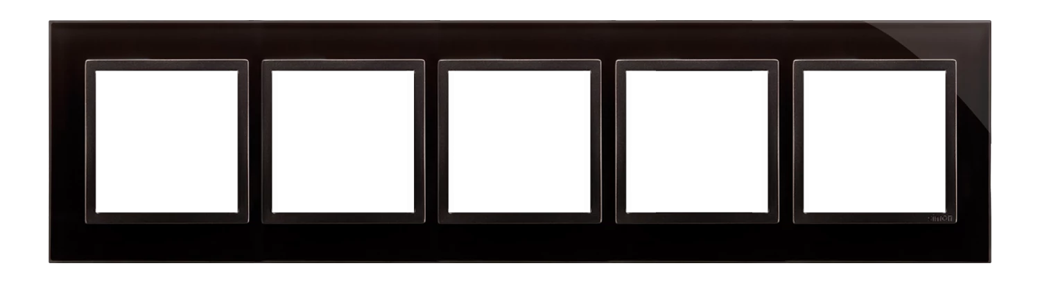 Ramka 5-krotna Nature-Szkło, ZASTYGŁA LAWA, IP20/IP44' ('IP44-zastosować uszczelki DUN4), SIMON54 NATURE o numerze katalogowym DRN5/73 w kategorii Ramki, Ramki, klawisze, plakietki. Produkt wyprodukowany przez markę KONTAKT-SIMON, seria SIMON 54 NATURE.