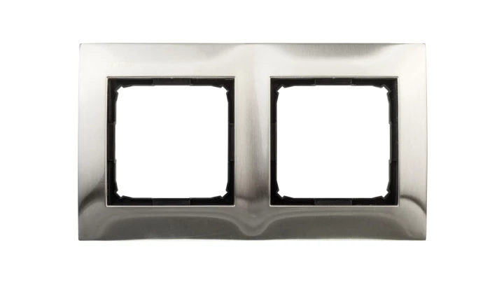 Ramka 2-krotna Metalowa Inox - IP20 / IP44, inox Simon54 o numerze katalogowym DR2/61 w kategorii Ramki, Ramki, klawisze, plakietki. Produkt wyprodukowany przez markę KONTAKT-SIMON, seria SIMON 54.