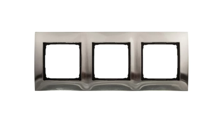 Ramka 3-krotna Metalowa Inox - IP20 / IP44, inox Simon54 o numerze katalogowym DR3/61 w kategorii Ramki, Ramki, klawisze, plakietki. Produkt wyprodukowany przez markę KONTAKT-SIMON, seria SIMON 54.