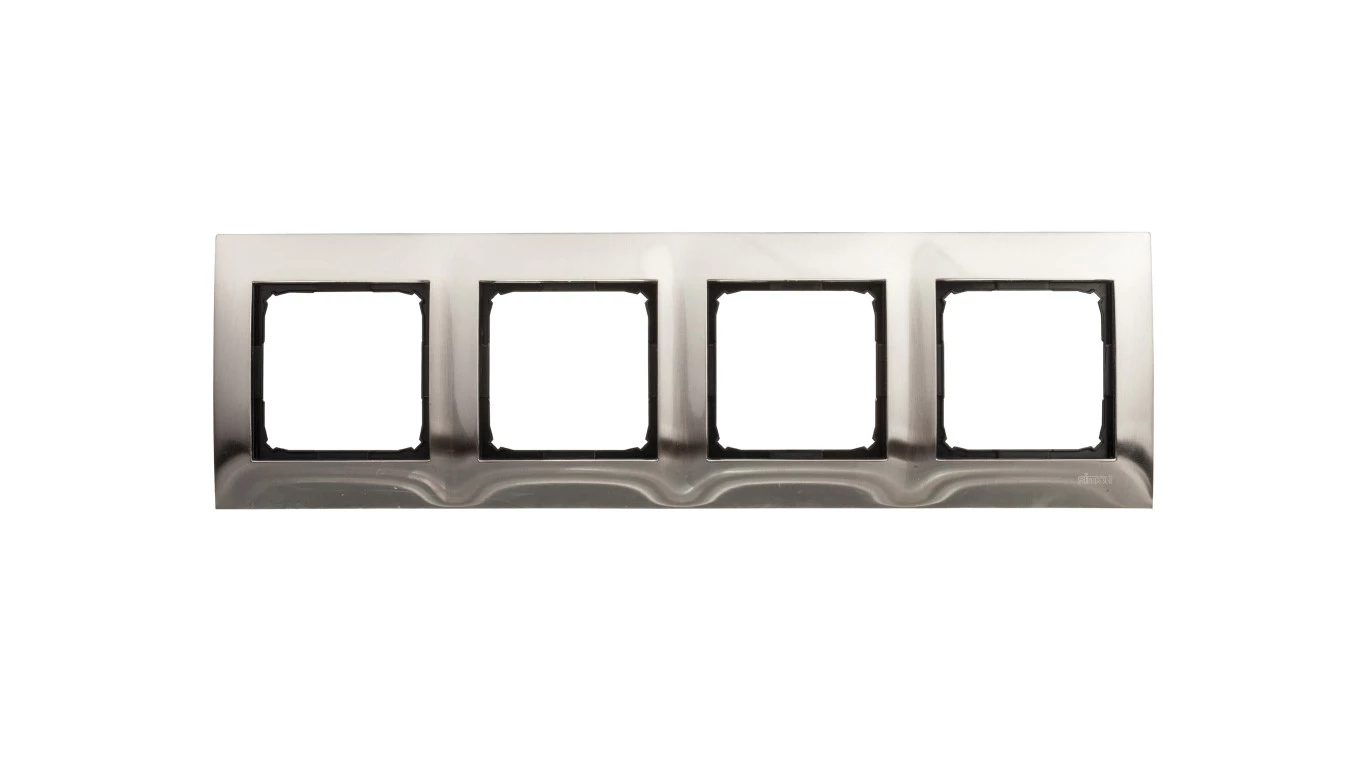 Ramka 4-krotna Metalowa Inox - IP20 / IP44, inox Simon54 o numerze katalogowym DR4/61 w kategorii Ramki, Ramki, klawisze, plakietki. Produkt wyprodukowany przez markę KONTAKT-SIMON, seria SIMON 54.