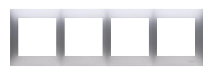 Ramka 4-krotna uniwersalna IP20 / IP44, srebrny mat Simon54 o numerze katalogowym DR4/43 w kategorii Ramki, Ramki, klawisze, plakietki. Produkt wyprodukowany przez markę KONTAKT-SIMON, seria SIMON 54.