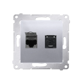 Simon 54 Gniazdo komputerowe podwójne 2xRJ45 kat.6 z przesłoną srebrny mat D62.01/43