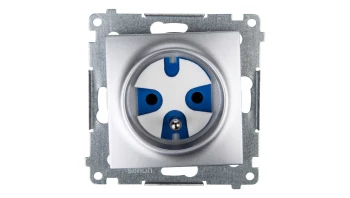 Simon 54 Gniazdo pojedyncze z/u 16A IP20 z przesłoną torów, szybkozłącza, srebrny mat DGZ1CZ.01/43
