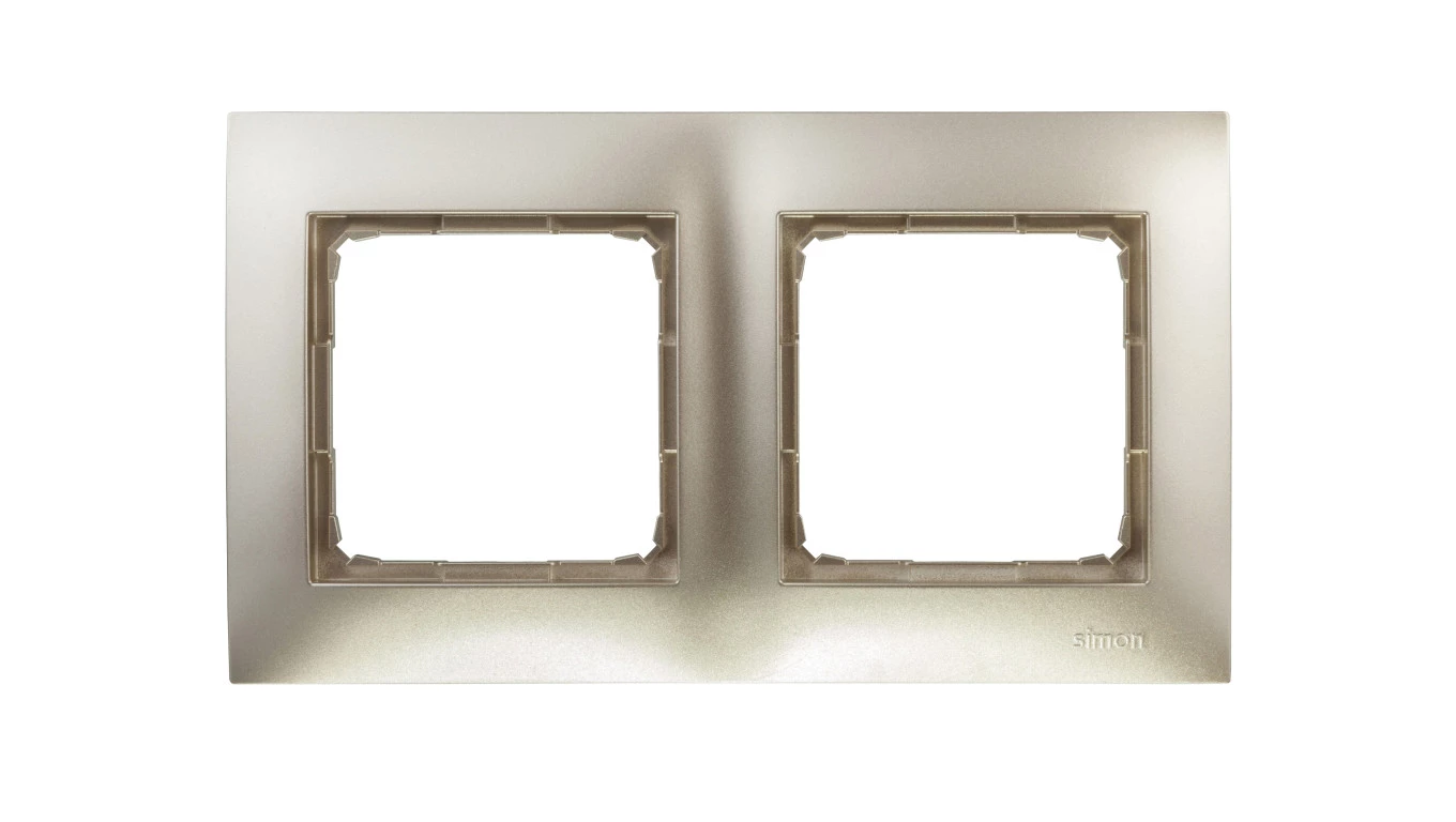 Ramka 2-krotna uniwersalna IP20 / IP44, złoty mat Simon54 o numerze katalogowym DR2/44 w kategorii Ramki, Ramki, klawisze, plakietki. Produkt wyprodukowany przez markę KONTAKT-SIMON, seria SIMON 54.