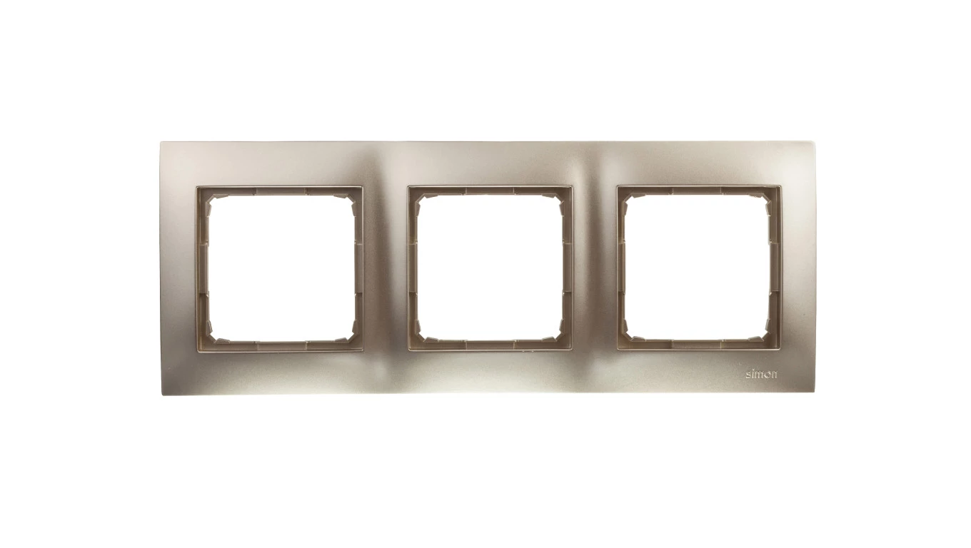 Ramka 3-krotna uniwersalna IP20 / IP44, złoty mat Simon54 o numerze katalogowym DR3/44 w kategorii Ramki, Ramki, klawisze, plakietki. Produkt wyprodukowany przez markę KONTAKT-SIMON, seria SIMON 54.