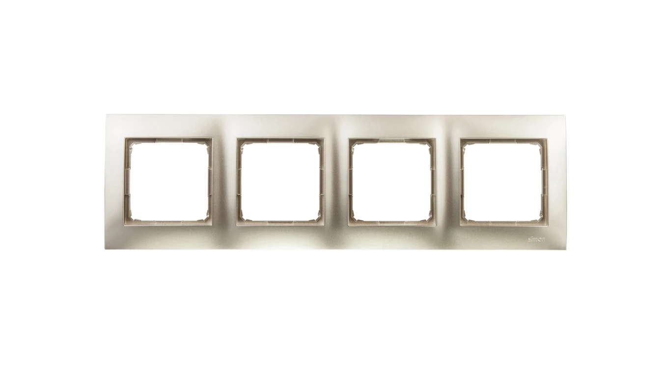 Ramka 4-krotna uniwersalna IP20 / IP44, złoty mat Simon54 o numerze katalogowym DR4/44 w kategorii Ramki, Ramki, klawisze, plakietki. Produkt wyprodukowany przez markę KONTAKT-SIMON, seria SIMON 54.