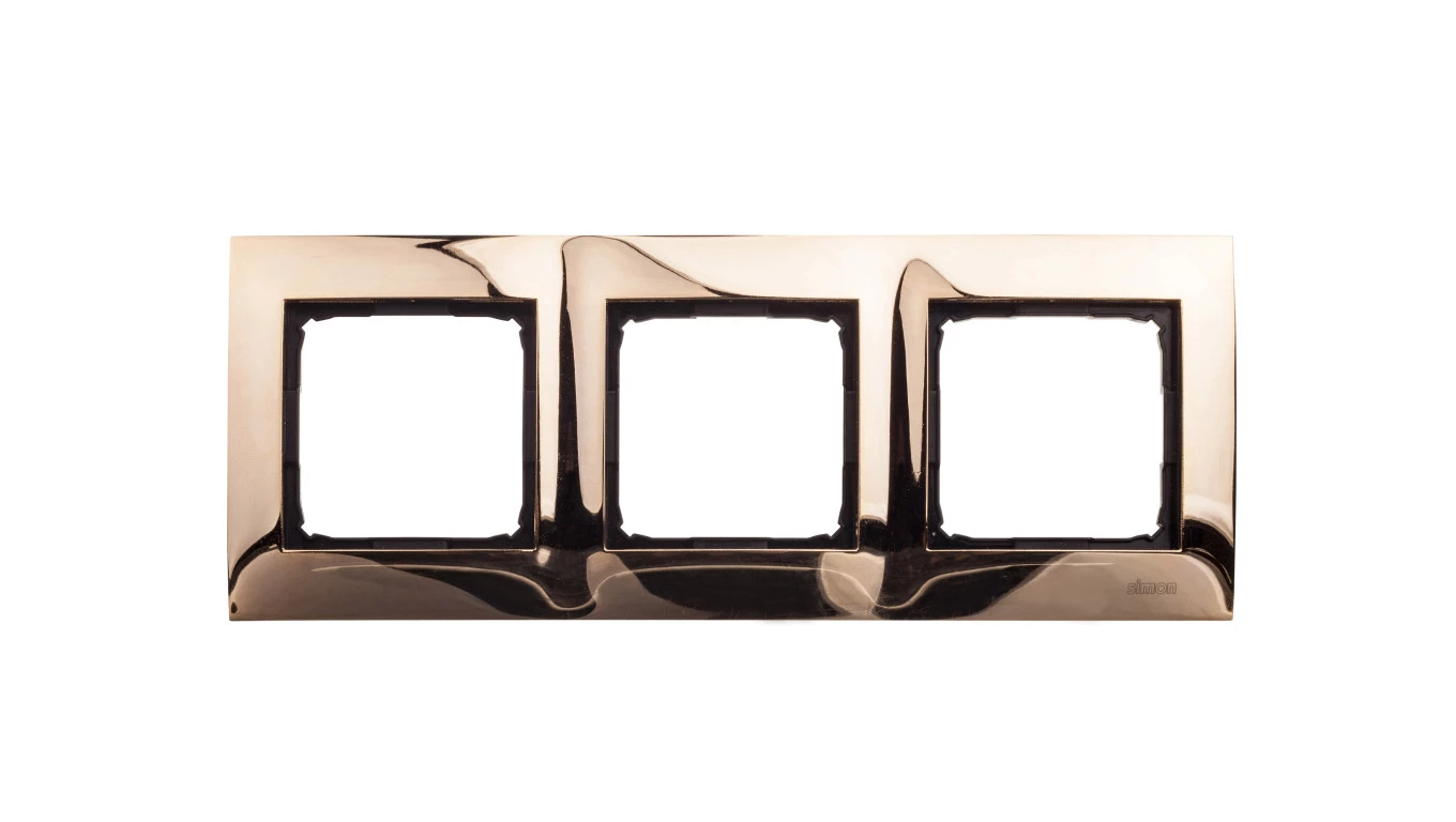 Ramka 3-krotna Metalowa Złoto - IP20 / IP44, złoto Simon54 o numerze katalogowym DR3/66 w kategorii Ramki, Ramki, klawisze, plakietki. Produkt wyprodukowany przez markę KONTAKT-SIMON, seria SIMON 54.