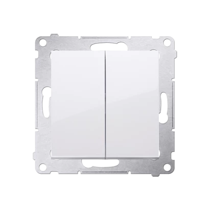 Przycisk podwójny zwierny bez piktogramu 10 AX, biały Simon54 o numerze katalogowym DP2.01/11 w kategorii Przyciski podtynkowe wielubiegunowe, Przyciski wielobiegunowe. Produkt wyprodukowany przez markę KONTAKT-SIMON, seria SIMON 54.