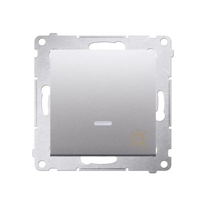Przycisk "światło" z podświetleniem LED 10 AX, srebrny mat Simon54 o numerze katalogowym DS1L.01/43 w kategorii Przyciski podtynkowe "światło", Przyciski "światło". Produkt wyprodukowany przez markę KONTAKT-SIMON, seria SIMON 54.