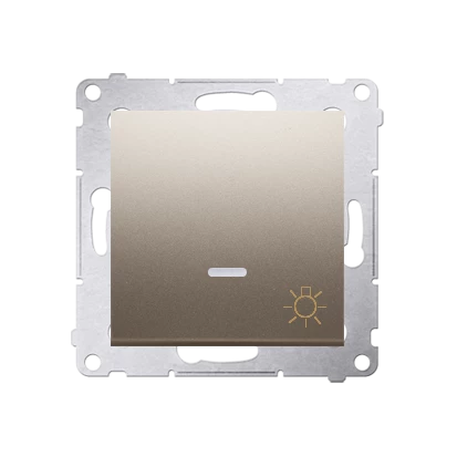 Przycisk "światło" z podświetleniem LED 10 AX, złoty mat Simon54 o numerze katalogowym DS1L.01/44 w kategorii Przyciski podtynkowe "światło", Przyciski "światło". Produkt wyprodukowany przez markę KONTAKT-SIMON, seria SIMON 54.