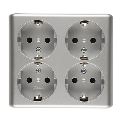 Gniazdo poczwórne Schuko natynkowe z przesłonami torów prądowych wersja skandynawska 16A, 250V~, szybkozłącza, srebrny mat, SIMON54 o numerze katalogowym EGSZ4SNZ/43 w kategorii Gniazda podtynkowe, Gniazda instalacyjne. Produkt wyprodukowany przez markę KONTAKT-SIMON, seria SIMON 54.