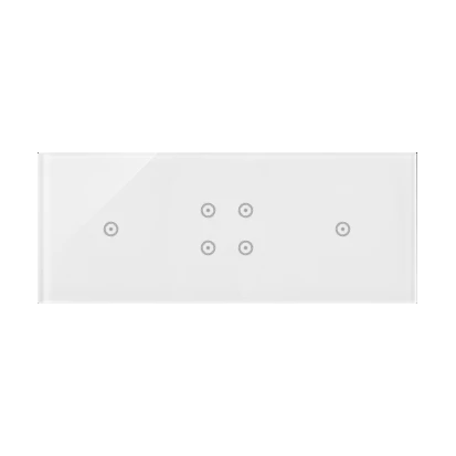 Panel dotykowy S54 Touch, 3 moduły, 1 pole dotykowe + 4 pole dotykowe + 1 pole dotykowe, biała perła, SIMON54 TOUCH o numerze katalogowym DSTR3141/70 w kategorii Ramki, Ramki, klawisze, plakietki. Produkt wyprodukowany przez markę KONTAKT-SIMON, seria SIMON 54 TOUCH.