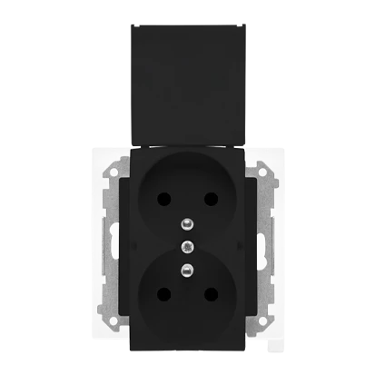 SIMON 55 CZARNY MAT MODUŁ GNIAZDO 2X Z/U Z KLAPĄ IP44 ZACISKI SPRĘŻYNOWE 16A 250V