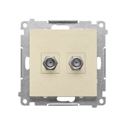 Gniazdo antenowe typu „F” podwójne (moduł). Do instalacji indywidualnych.: Szampański mat, SIMON55 o numerze katalogowym   TASF2.01/144 w kategorii Łączniki i gniazda instalacyjne>Gniazda teleinformacyjne, multimedialne. Produkt wyprodukowany przez markę KONTAKT-SIMON, seria SIMON 55.