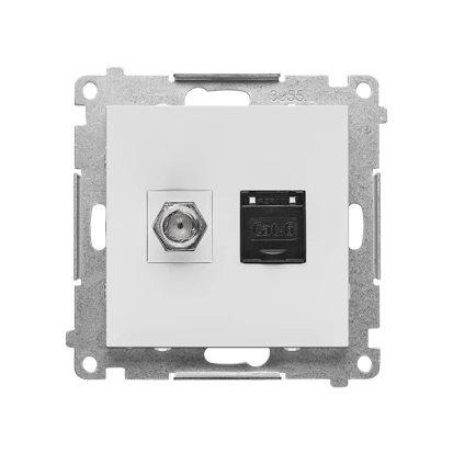 Gniazdo antenowe typu „F” + RJ45 kat.6 (moduł): Jasnoszary mat, SIMON55 o numerze katalogowym   TASFRJ45.01/114 w kategorii Łączniki i gniazda instalacyjne>Gniazda teleinformacyjne, multimedialne. Produkt wyprodukowany przez markę KONTAKT-SIMON, seria SIMON 55.