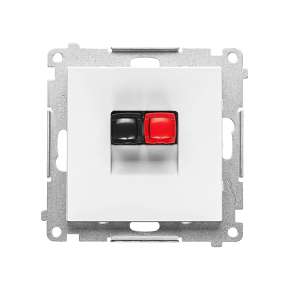 Gniazdo głośnikowe 1-krotne (moduł). Przekrój przewodów dla wejścia i wyjścia 2,5 mm2: Biały mat, SIMON55 o numerze katalogowym   TGL1.01/111 w kategorii Łączniki i gniazda instalacyjne>Gniazda głośnikowe. Produkt wyprodukowany przez markę KONTAKT-SIMON, seria SIMON 55.