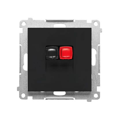 Gniazdo głośnikowe 1-krotne (moduł). Przekrój przewodów dla wejścia i wyjścia 2,5 mm2: Czarny mat, SIMON55 o numerze katalogowym   TGL1.01/149 w kategorii Łączniki i gniazda instalacyjne>Gniazda głośnikowe. Produkt wyprodukowany przez markę KONTAKT-SIMON, seria SIMON 55.