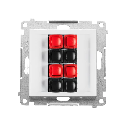 Gniazdo głośnikowe 4-krotne (moduł). Przekrój przewodów dla wejścia i wyjścia 2,5 mm2: Biały mat, SIMON55 o numerze katalogowym   TGL4.01/111 w kategorii Łączniki i gniazda instalacyjne>Gniazda głośnikowe. Produkt wyprodukowany przez markę KONTAKT-SIMON, seria SIMON 55.