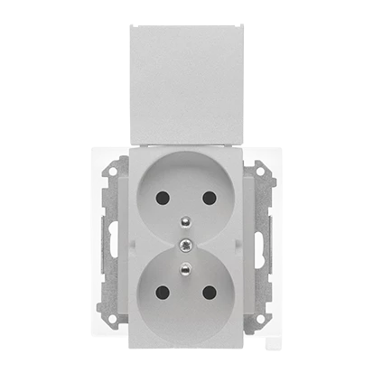 Gniazdo wtyczkowe podwójne do wersji IP44 z uszczelką (moduł) 16 A, 250 V~, szybkozłącza. Klapka w kolorze pokrywy: Aluminium mat, SIMON55 o numerze katalogowym   TGZ2BMCZ.01/143 w kategorii Gniazda instalacyjne>Gniazda podtynkowe. Produkt wyprodukowany przez markę KONTAKT-SIMON, seria SIMON 55.