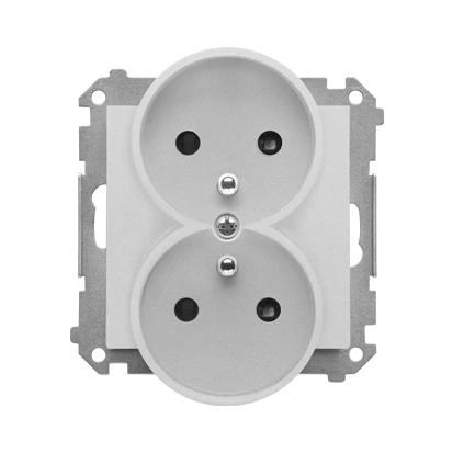 Gniazdo wtyczkowe podwójne z uziemieniem z przesłonami (moduł) 16 A, 250 V~, szybkozłącza: Aluminium mat, SIMON55 o numerze katalogowym   TGZ2MCZ.01/143 w kategorii Gniazda instalacyjne>Gniazda podtynkowe. Produkt wyprodukowany przez markę KONTAKT-SIMON, seria SIMON 55.