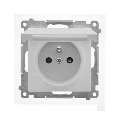Simon 54 Gniazdo pojedyncze SCHUKO z/u 16A IP20 z przesłoną torów, szybkozłącza, białe DGSz1CZ.01/11
