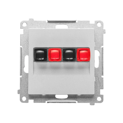 Gniazdo głośnikowe 2-krotne (moduł). Przekrój przewodów dla wejścia i wyjścia 2,5 mm2: Aluminium mat, SIMON55 o numerze katalogowym   TGL2.01/143 w kategorii Łączniki i gniazda instalacyjne>Gniazda głośnikowe. Produkt wyprodukowany przez markę KONTAKT-SIMON, seria SIMON 55.