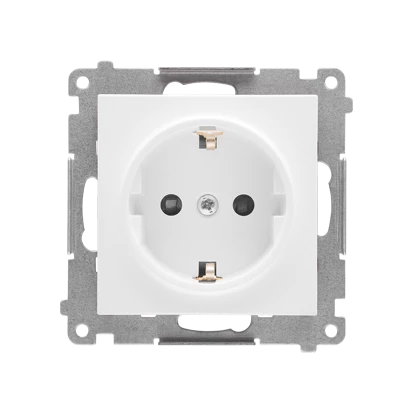 Simon 54 Gniazdo pojedyncze SCHUKO z/u 16A IP20 z przesłoną torów, szybkozłącza, białe DGSz1CZ.01/11
