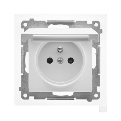 SIMON 55 MODUŁ BIAŁY MAT GNIAZDO 1X Z/U Z KLAPKĄ IP44 ZACISKI SPRĘŻYNOWE 16A 250V