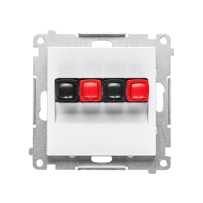 Gniazdo głośnikowe 2-krotne (moduł). Przekrój przewodów dla wejścia i wyjścia 2,5 mm2: Biały mat, SIMON55 o numerze katalogowym   TGL2.01/111 w kategorii Łączniki i gniazda instalacyjne>Gniazda głośnikowe. Produkt wyprodukowany przez markę KONTAKT-SIMON, seria SIMON 55.