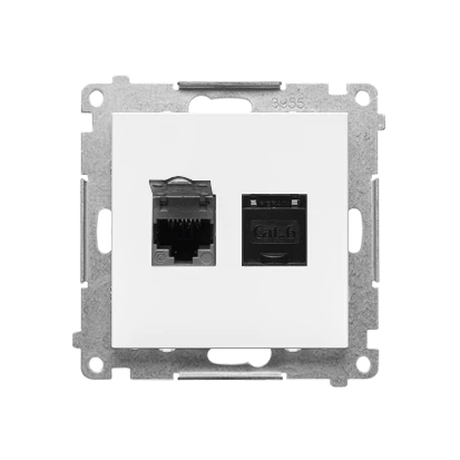 Gniazdo komputerowe podwójne RJ45 kategoria 6, z przesłoną przeciwkurzową (moduł): Biały mat, SIMON55 o numerze katalogowym   T62.01/111 w kategorii Łączniki i gniazda instalacyjne>Gniazda teleinformacyjne, multimedialne. Produkt wyprodukowany przez markę KONTAKT-SIMON, seria SIMON 55.