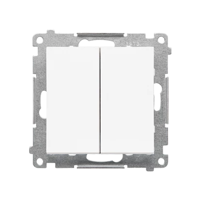 Łącznik schodowy podwójny bez piktogramu (moduł) 10 AX, 250 V~, szybkozłącza: Biały mat, SIMON55 o numerze katalogowym   TW6/2.01/X/111 w kategorii Łączniki schodowe>Łączniki podtynkowe schodowe. Produkt wyprodukowany przez markę KONTAKT-SIMON, seria SIMON 55.