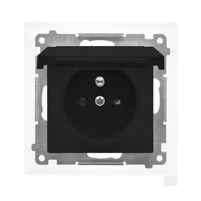 SIMON 55 MODUŁ CZARNY MAT GNIAZDO 1X B/U Z KLAPKĄ IP44 ZACISKI SPRĘŻYNOWE 16A 250V