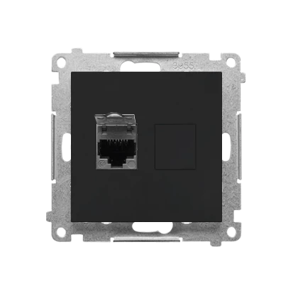 Gniazdo komputerowe pojedyncze RJ45 kategoria 6, ekranowane z przesłoną przeciwkurzową (moduł): Czarny mat, SIMON55 o numerze katalogowym   T61E.01/149 w kategorii Łączniki i gniazda instalacyjne>Gniazda teleinformacyjne, multimedialne. Produkt wyprodukowany przez markę KONTAKT-SIMON, seria SIMON 55.
